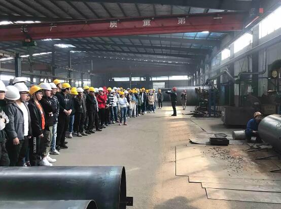 Director Jiang vividly introduced the production process, production process, blanking and hydraulic test of pressure vessels. The students also focused on the welding process of automatic welding, secondary welding and argon arc welding.